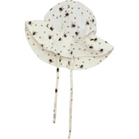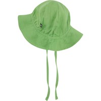 Turkos solhatt i lätt, vävd ekologisk bomull med böjd skärm och knytband under hakan.