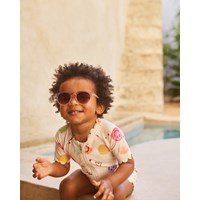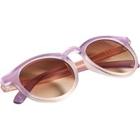 Klassiska solglasögon i lila och persika med tonade linser och satinfinish. UV-skyddskategori 2 blockerar 57-82% av solens skadliga strålar. Perfekt för dagar med lätt molntäcke eller mild sol. Passar för åldersgruppen 7 till 16 år.