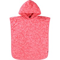 Knälång badponcho i rosa med citrusmönster i mjuk bomullsfrotté. De öppna sidorna ger god rörelsefrihet och den fasta huvan med stor öppning gör ponchon lätt att ta på och av. Frottén torkar snabbt och är lämplig för stranden och poolen.