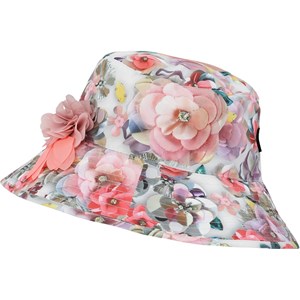Bucket hat med bred kant och UV-skydd 50+, som skyddar barnet från solen. Molos bucket hat är en perfekt sommar-accessoar, som livar upp varje outfit. Solhatten har ett tryck av blommor gjorda av paljetter. Denna Molo-produkt är återvunnen och tillverkad av REPREVE återvinningsbar polyester. REPREVE är det ledande och mest erkända materialet i återvinningsbara fibrer och tillverkas av använda plastflaskor och annat restavfall. Produktionen av återvunnen polyester kräver mycket färre resurser och avger mindre koldioxid. Därför är Molos återvunna badkläder det hållbara valet.