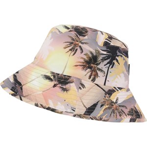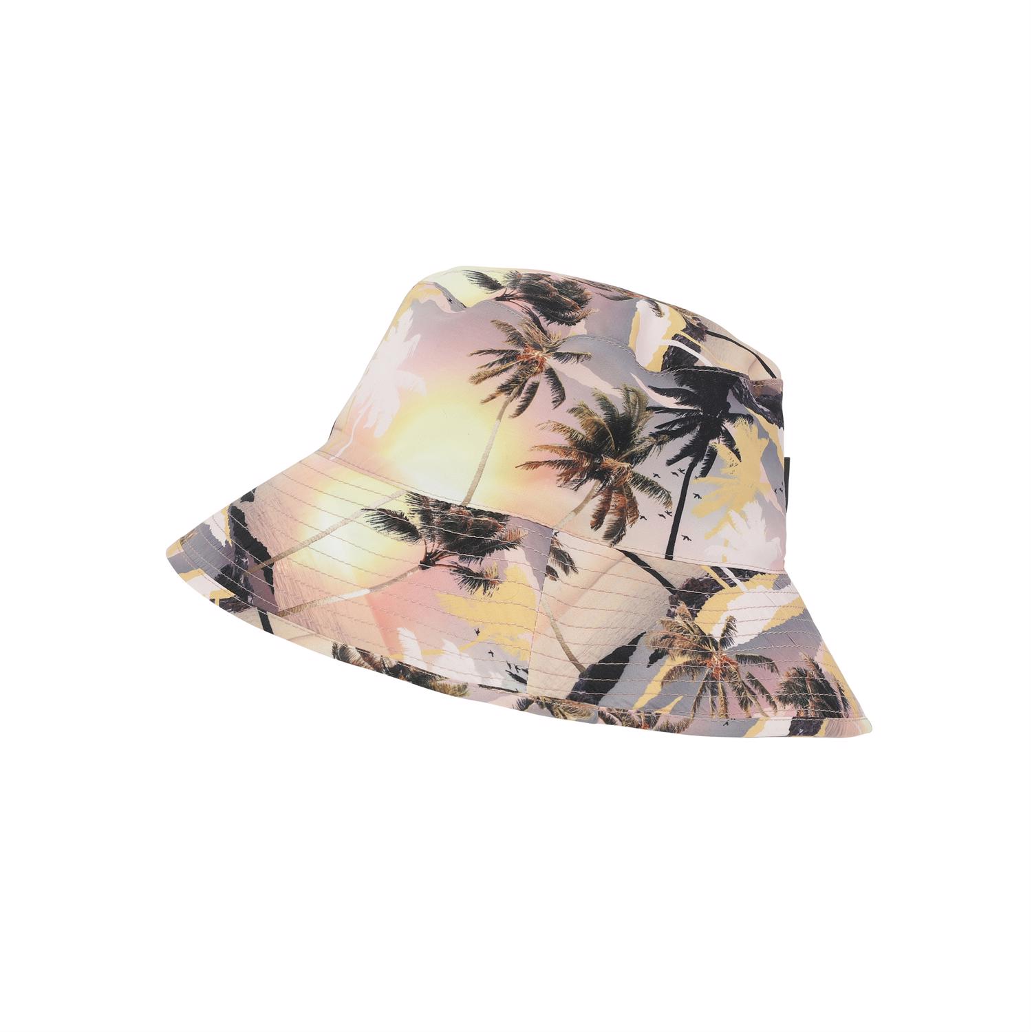 Bucket hat med bred kant och UV-skydd 50+, som skyddar barnet från solen. Molos bucket hat är en perfekt sommar-accessoar, som livar upp varje outfit. Solhatten har ett tryck av havet och palmer. Denna Molo-produkt är återvunnen och tillverkad av REPREVE återvinningsbar polyester. REPREVE är det ledande och mest erkända materialet i återvinningsbara fibrer och tillverkas av använda plastflaskor och annat restavfall. Produktionen av återvunnen polyester kräver mycket färre resurser och avger mindre koldioxid. Därför är Molos återvunna badkläder det hållbara valet.