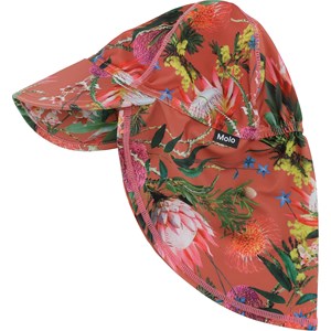 Solhatt med UV skyddsfaktor 50+, bred skärm och nackskydd som ger ett effektivt skydd till ditt barns mest utsatta områden. Solhatten är dekorerad med trycket 'Australian Flowers'.