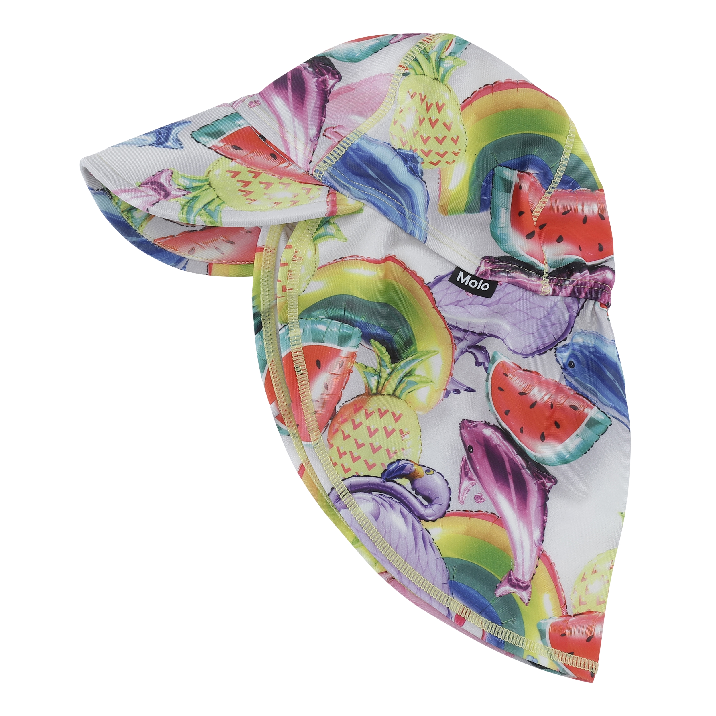 Solhatt med UV skyddsfaktor 50+, bred skärm och nackskydd som ger ett effektivt skydd till ditt barns mest utsatta områden. Solhatten är dekorerad med trycket 'Balloons'.
