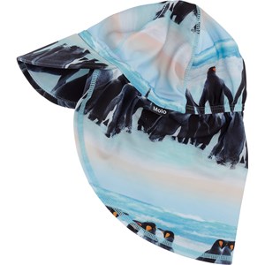 Solhatt med UV skyddsfaktor 50+, bred skärm och nackskydd som ger ett effektivt skydd till ditt barns mest utsatta områden. Solhatten är dekorerad med trycket 'Penguin Stripe'.