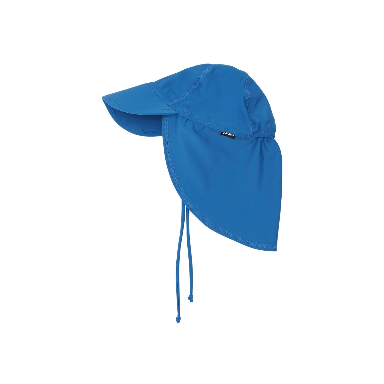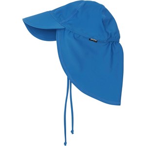 Solhatt med UV-skydd 50+, bred skärm och en längre nacke, som skyddar barnet från sol på bästa sätt. Solhatten har en fin blå färg.