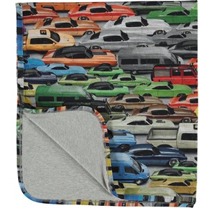 Mjuk, dubbelsydd bomullsfilt med tryck av bilar.