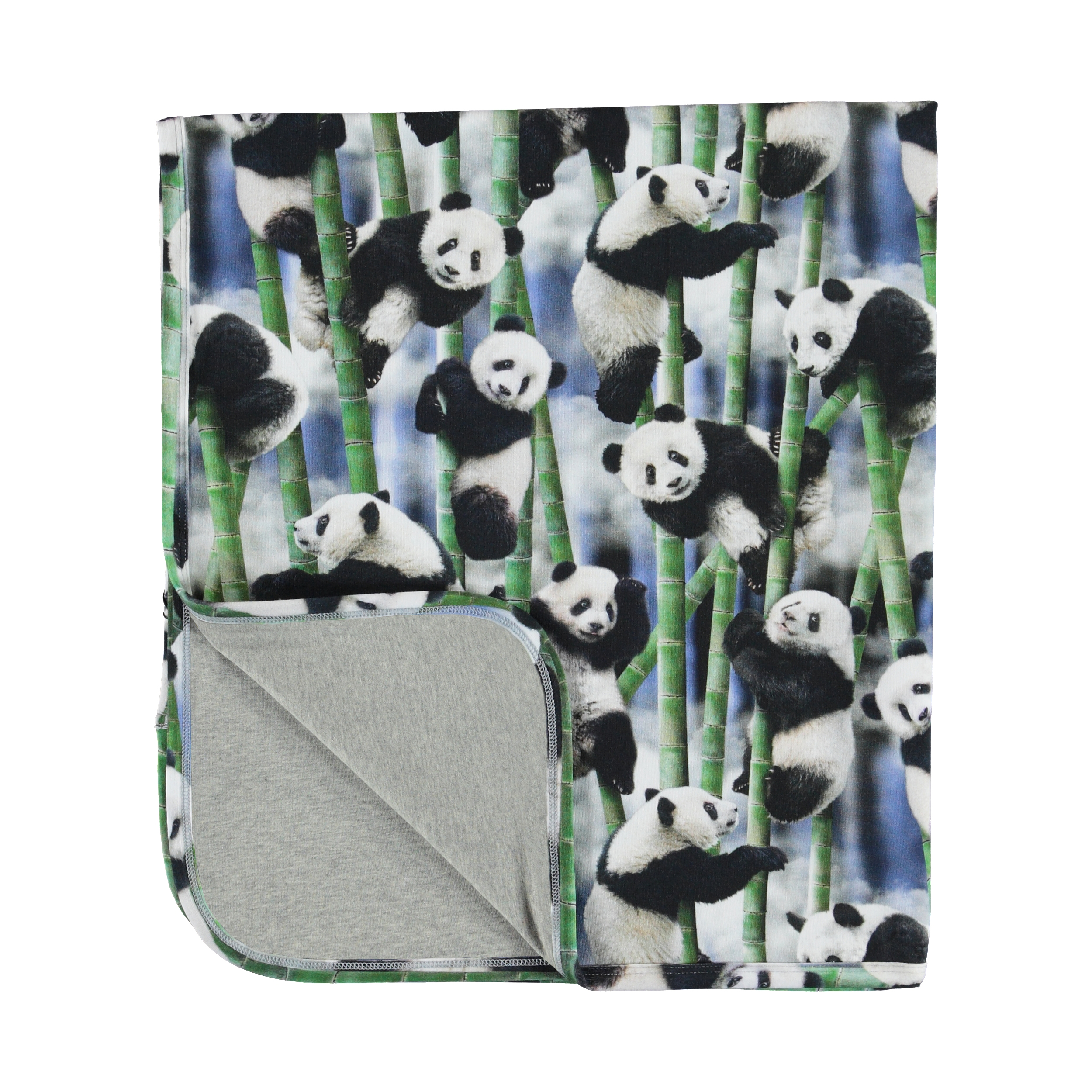 Mjuk, dubbelsydd bomullsfilt med tryck av pandabjörnar.