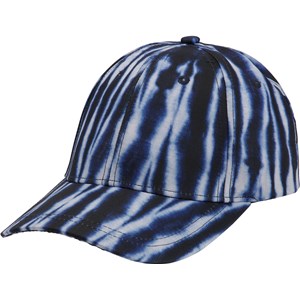 Basebollkeps i blå med tie-dye mönster. Kepsen har lätt böjd skärm och justeras bak i nacken. Vägledande storleksguide: 3-5 år = 52 cm, 6-8 år = 54 cm, 9-14 år = 56 cm.