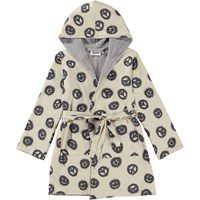 Wave är en mjuk morgonrock i off-white med peacetecken och smileys. Morgonrocken är fodrad med en lätt och tätvävd mjuk frotté i grå, har två fickor, knytband i midjan och en stor luva för att hålla nacken och huvudet extra varmt. Wyn är en härligt mjuk morgonrock i en lätt och tätvävd off-white frotté. Rocken har två fickor, knytband i mdijan samt en stor uva för att hålla nacken och huvudet extra varmt.