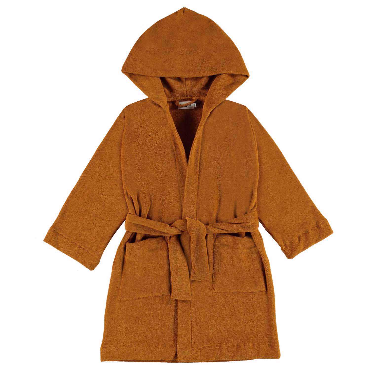 Wyn är en ekologisk mjuk morgonrock i en lätt, tätvävd och mjuk brun frotté. Morgonrocken hartvå fickor, knytband i midjan och en stor luva för att hålla huvud och nacke extra varmt.