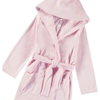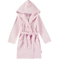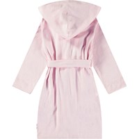 Rosa morgonrock gjord av supermjuk, ekologisk bomullsfrotté. Morgonrocken har två fickor, knyt i midjan och en huva.