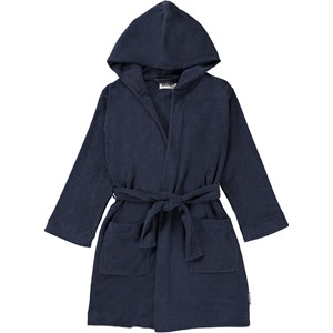 Wyn är en härligt muk morgonrock i lätt och tätvävd blå frotté. Rocken har två fickor, knytband i midjan och en stor luva för att hålla nacken och huvudet extra varmt.