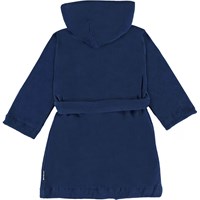 Wyn är en ekologisk mjuk morgonrock i en lätt, tätvävd och mjuk blå frotté. Morgonrocken hartvå fickor, knytband i midjan och en stor luva för att hålla huvud och nacke extra varmt.