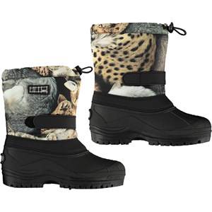 Vinterstövlar med sovande djur. Stövlarna är tillverkade i funktionell polyester med justerbar stängning i skaftet och en sula av mjuk gummi, som fortsätter upp runt foten. Stövelns yttermaterial är 59% återvunnet och tillverkat av återvunnen polyester. Både sulan och skaftet är vattentätt var för sig. Stövlarna har en invändig, kraftig polyesterstrumpa som gör den användbar till både de kallare och varmare perioderna. Denna produkt har en vattenavvisande PFC-fri impregnering (innehåller t.ex. inte PFOS, PFOA eller liknande). Vattenpelare: 10.000 mm. Andningsförmåga: 8.000 g/m2/24t.
