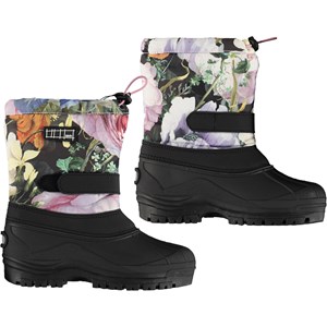 Vinterstövlar med blommigt mönster. Stövlarna är tillverkade i funktionell polyester med justerbar stängning i skaftet och en sula av mjuk gummi, som fortsätter upp runt foten. Stövelns yttermaterial är 59% återvunnet och tillverkat av återvunnen polyester. Både sulan och skaftet är vattentätt var för sig. Stövlarna har en invändig, kraftig polyesterstrumpa som gör den användbar till både de kallare och varmare perioderna. Denna produkt har en vattenavvisande PFC-fri impregnering (innehåller t.ex. inte PFOS, PFOA eller liknande). Vattenpelare: 10.000 mm. Andningsförmåga: 8.000 g/m2/24t.