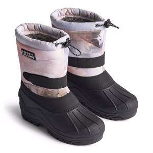 Praktiska vinterstövlar med enhörningsmönster och en stadig och halkfri svart sula. Stövlarna har en justerbar resår längst upp på skaftet, justerbart kardborreband runt ankeln, en innerstrumpa och en bra höjd, vilket gör dem lämpliga för alla typer av väder.