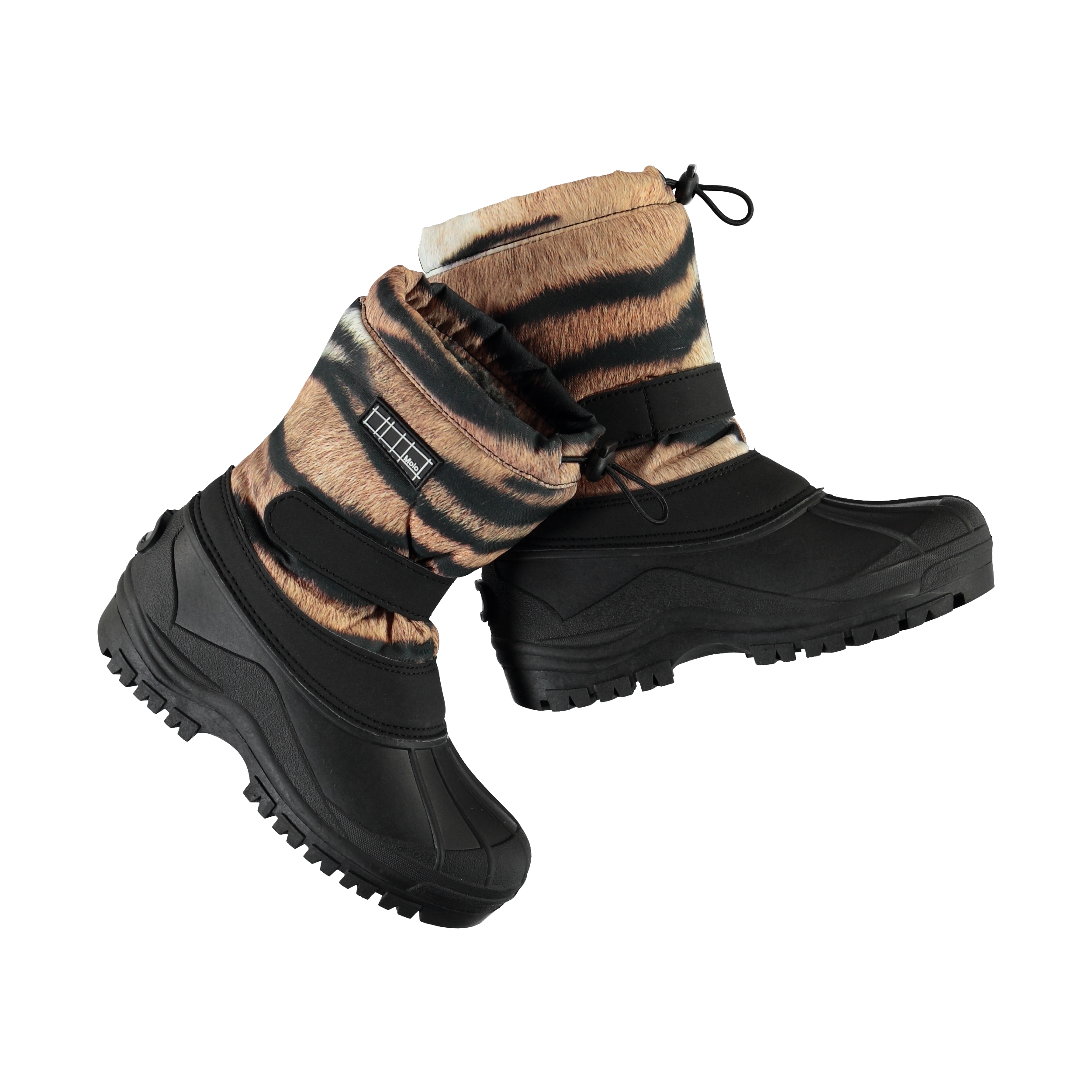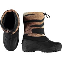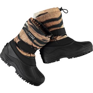 Vinterstövlar med reglerbar knäppning. Sula i mjuk gummi och skaft i funktionell polyester. Stövlarna är i Molos tigertryck. Sula samt skaft är vattentäta. Stövlarna har en kraftig, borttagbar innersocka i polyester, som gör stövlarna användbara i såväl kalla som varma perioder.Produkten har en vattenavvisande PFC-fri impregnering (innehåller ej PFOS, PFOA eller liknande). Vattenpelare: 10.000 mm. Andningsförmåga: 8.000 g/m2/24t.