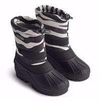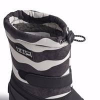 Praktiska vinterstövlar med zebraränder och en stadig och halkfri svart sula. Stövlarna har en justerbar resår längst upp på skaftet, justerbart kardborreband runt ankeln, en innerstövel och en bra höjd, vilket gör dem lämpliga för alla typer av väder.