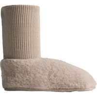 Beige babytossar i 100% Merino ull som värmer de minste fötterna.