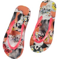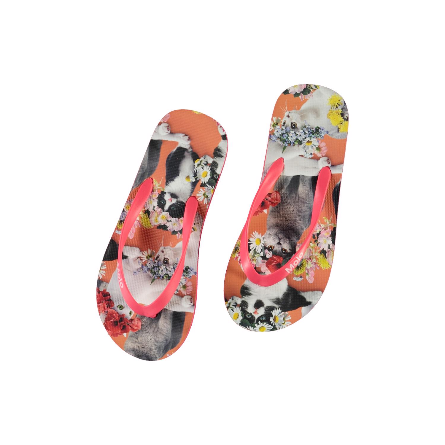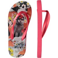 Perfekta flip-flops för hela sommaren. Sandalerna har ett humoristiskt tryck innuti, av en katt med en blomkrans.