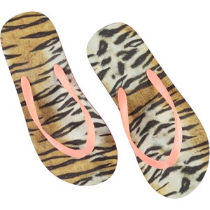 Oumbärliga flipflop för hela sommaren, här med persikofärgad tårem och coolt tigerrandigt mönster.