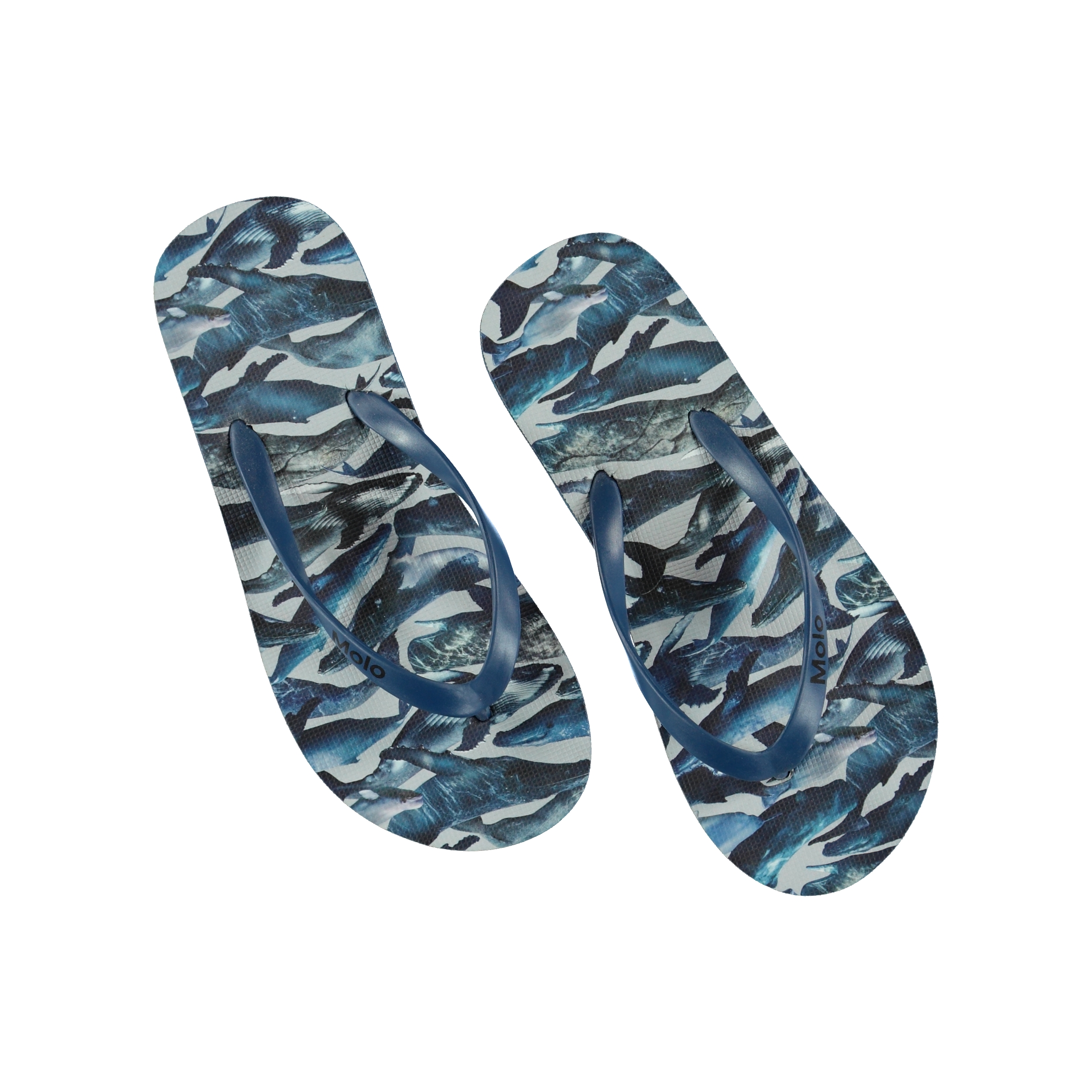 Must have flip-flops med tårem. Sandalens sula har tryck av valar och med matchande blå rem.