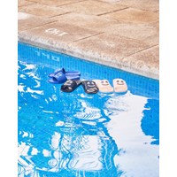 Blåa sandaler med en bred fotrem och formad innersula. Sandalerna är vattenresistenta, vilket gör dem perfekta för poolen eller stranden. Fotremmen har en smiley med palmlöv som ögon. Storlekarna 23/24 och 25/26 har en praktisk elastisk hälrem som säkerställer en bekväm passform.