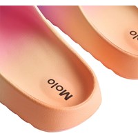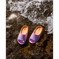 Formgjutna badtofflor i lila och orange. Vattenavvisande och idealiska för pool och strand.