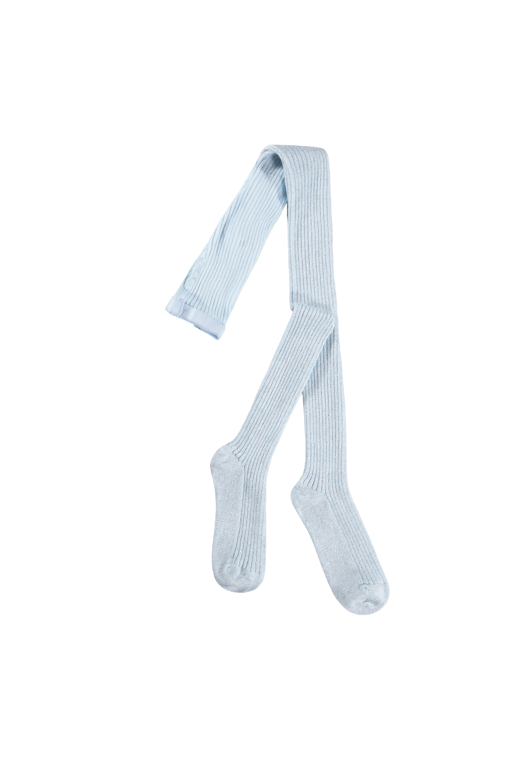 Finstickade ribbade strumpbyxor i ljusblått med glitter i bomull. De har resår i midjan för att säkerställa en bekväm passform.