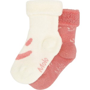 2-pack ekologiska babystrumpor i vitt och ljusrosa med uppvik och söta smileys.