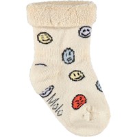 2-pack babystrumpor i viskos. Förpackningen innehåller ett par rosa strumpor med en smiley och ett par off-white med mångfärgade smileys.