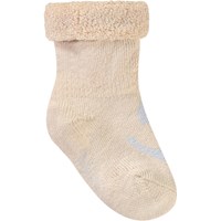 2-pack babysockor i viskos. Strumporna är ljusblå med små beige smileys och beige med en ljusblå smiley.