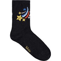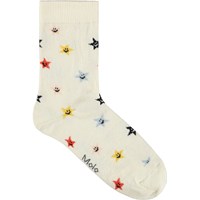 2-pack finstickade strumpor i bomull med en ribbad mudd för bättre passform. Förpackningen inkluderar ett par off-white strumpor och ett par svarta strumpor, båda med stjärnmotiv.