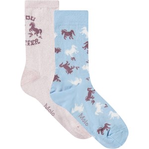 2-pack finstickade bomullsstrumpor med en ribbad kant för bättre passform. Paketet inkluderar ett par ljuslila strumpor med glitter, en tryckt häst och texten 'You Matter', samt ett par ljusblå strumpor med hästar.