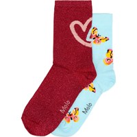 2-pack finstickade strumpor i ekologisk bomull med ribbad kant upptill för bättre passform. Paketet innehåller ett par bruna med zebraränder och ett par rosa med svarta blommor.