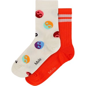 2-pack finstickade strumpor i mjuk bomullsblandning med ribbad, elastisk kant. Paketet innehåller ett par Yin-Yang mönstrade och ett par rödglittriga med vita ränder överst på skaftet.