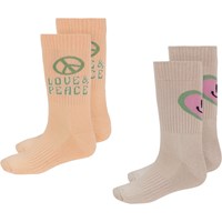 Två par sportiga strumpor i ribb. Det ena paret är i svart och det andra blå, båda med smiley framtill.