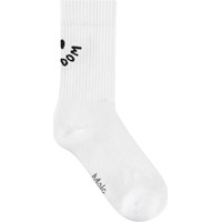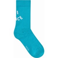 2-pack bomullsstrumpor. Strumporna har muddar och resår upptill, och de är underbart mjuka att bära. Förpackningen innehåller ett par vita och ett par turkosa strumpor. Båda paren har en smiley på baksidan med 'Peace' och 'Freedom' skrivet som mun.