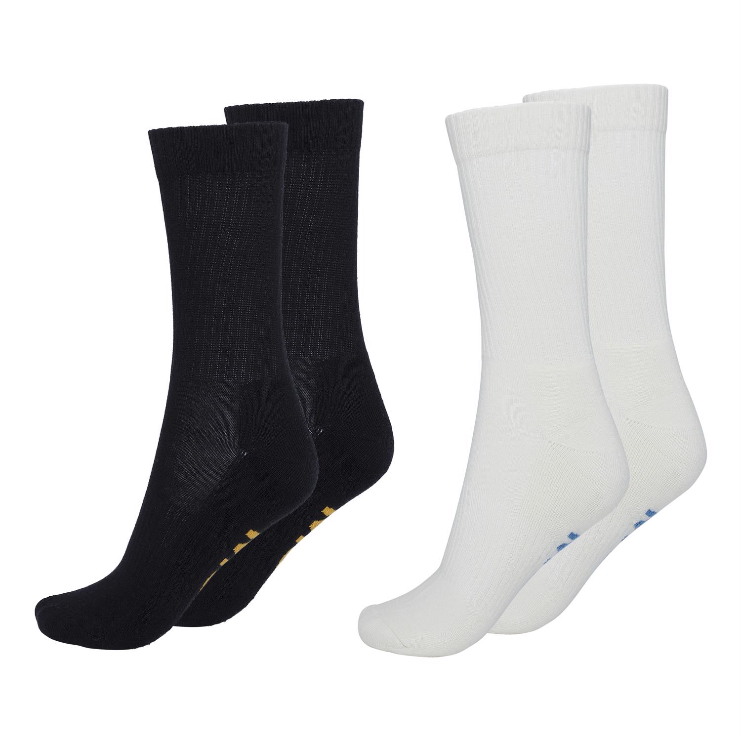 Två par sportiga ribbade strumpor. Ett par strumpor är i svarta , medan det andra paret är vita.