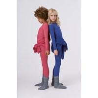 Två par långa strumpor. Det ena paret är grå med grov ribb, medan det andra paret är ljusgrå med smileys och peacetecken.