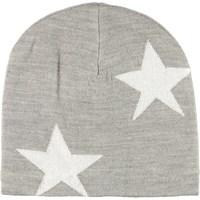 Grön stickad mössa i en mjuk ullmix med instickade stjärnor och ribbkant nertill.