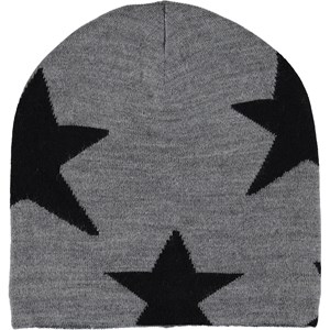 Svart mössa i en mjuk ullmix med stickade stjärnor och ribbkant nedtill.
