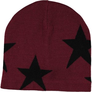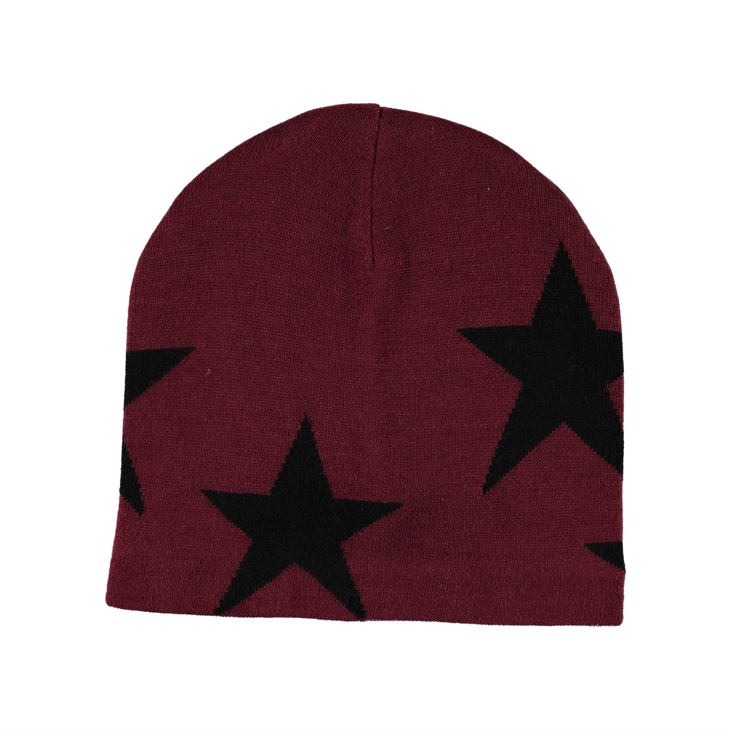 Vinröd mössa i en mjuk ullmix, fina stickade stjärnor och en ribbad nederkant.
