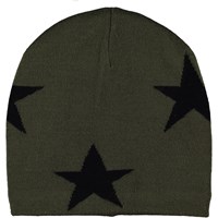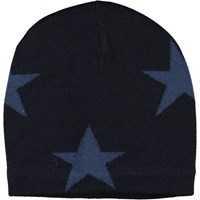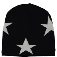 Grå stickad mössa med instickade stjärnor. Mössan är tillverkad i en mjuk ullmix och har ribbkant nertill.