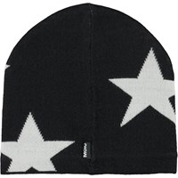Svart mössa i mjuk ullmix med kontrastfärgade stjärnor och ribbad kant.