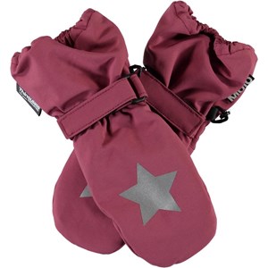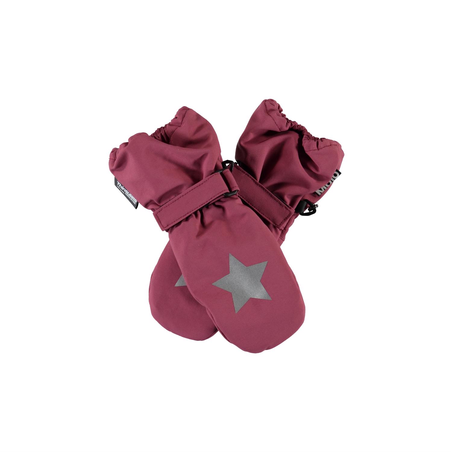 Vinröda, vattentäta vantar med 3M™ Thinsulate™ isolering, med bra andningsförmåga. Vantarna har stjärnreflexer framtill, samt en elastisk, justerbar kant vid handleden. Notera att skaftet på denna modell är en aning längre än på Mitzy, för att undvika ett mellanrum vid jackans ärmslut. Produkten har en vattenavvisande PFC-fri impregnering (innehåller exempelvis inte PFOS, PFOA och liknande). Vattenpelare: 10.000 mm. Andningsförmåga: 8.000 g/m2/24t.