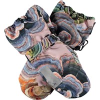 Grønne vinterhandsker med print af dinosaurer. På indersiden af handsken og ved tommelfingeren er der sorte gummibelægninger, der giver en god gribehåndflade. Handskerne egner sig godt til alt slags vejr og er perfekte både til hverdagen eller skiferien. Derudover matcher handskerne med Molo’s overtøj i farver og print. Skaftet på denne model er en smule længere end på Mitzy, så der ikke kommer en åbning ved jakkeærmet. Bemærk at str. 1-2 år har lynlås i skaftet i stedet for velcrolukning.