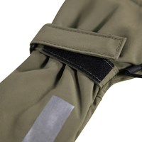 Gröna, vattentäta och andningsbara vantar med fleecefoder och 3M™ Thinsulate™-isolering i återvunnen nylon. Vantarna har en reflex på framsidan, samt elastiskt och justerbart kardborreband vid handleden. Observera att skaftet på denna modell är något längre än på Mitzy, så att det inte blir någon öppning vid jackärmen.