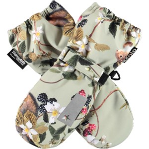 Ljusgröna vattentäta och andningsbara vantar med bär och blommor. Vantarna har 3M Thinsulate isolering, stjärnreflex på ovansidan och justerbar kardborre vid handleden. Yttermaterialet är tillverkat av 45% återvunnen polyester, the 3M™ Thinsulate™ fodret av 78% återvunnen polyester och materiale av 100% återvunnen polyester. Notera att skaftet på dessa vantar är något längre än på modellen Mitzy, så att där inte blir en öppning vid jackärmen. Denna produkt har en vattenavvisande PFC-fri impregnering (innehåller t.ex. inte PFOS, PFOA eller liknande). Vattenpelare: 10.000 mm. Andningsförmåga: 8.000 g/m2/24t. Storlekarna 1-2 år har dessutom dragkedja i skaftet.