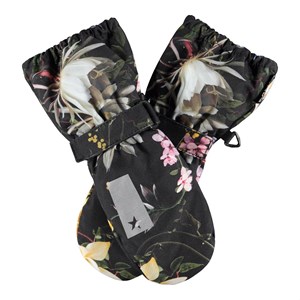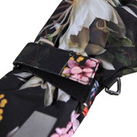 Svarta, vattentäta och andningsbara vantar med blommigt mönster, fleecefoder och 3M™ Thinsulate™-isolering. Vantarna har en reflex på framsidan, samt elastiskt och justerbart kardborreband vid handleden. Observera att skaftet på denna modell är något längre än på Mitzy, så att det inte blir någon öppning vid jackärmen.